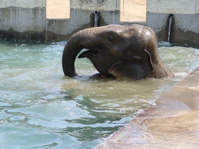 ばっしゃーん とゾウが水に入れば、これはもうホモサピエンスの歓声があがります。