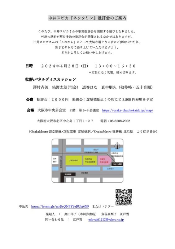 中井スピカ歌集『ネクタリン』批評会を行います。
